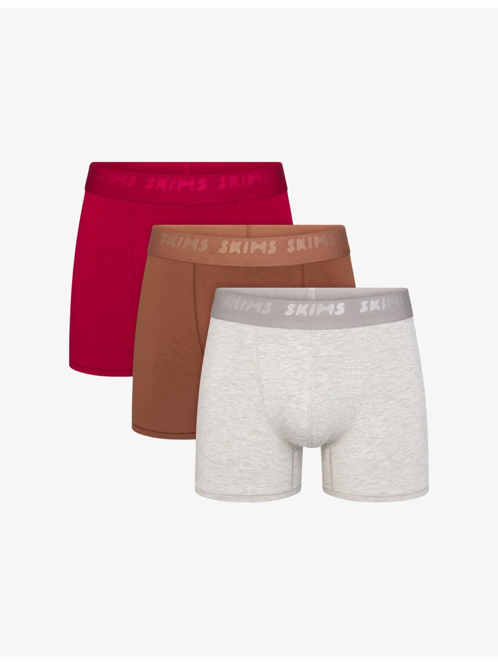 PRODUCT DETAILS - SKIMS pack of three modal-jersey boxer briefs - 91% modal, 9% elastane - Mid-rise, branded elasticated waistband, supportive pouch at centre front - Machine wash cold - Model is 6ft 3in/1.91m and wears a size medium - Lightweight, stretchy - For hygiene reasons, we are unable to exchange or refund this product, unless faulty. Ref: R04538436