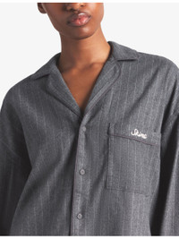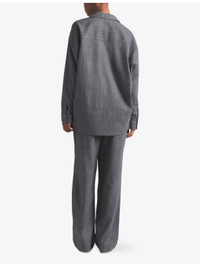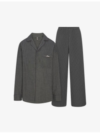 PRODUCT DETAILS - SKIMS cotton sleep set - 100% cotton - Top: oversized, long sleeves, spread collar, front button closure, chest patch pocket, locker loops, embroidered logo on pocket, heavyweight flannel, striped - Trousers: straight leg, elasticated waist, functional fly, interior drawcord, heavyweight flannel, striped - Machine wash mild - True to size - Model is 5ft 10in/1.78m and wears a size small - Midweight, slight stretch Ref: R04538129
