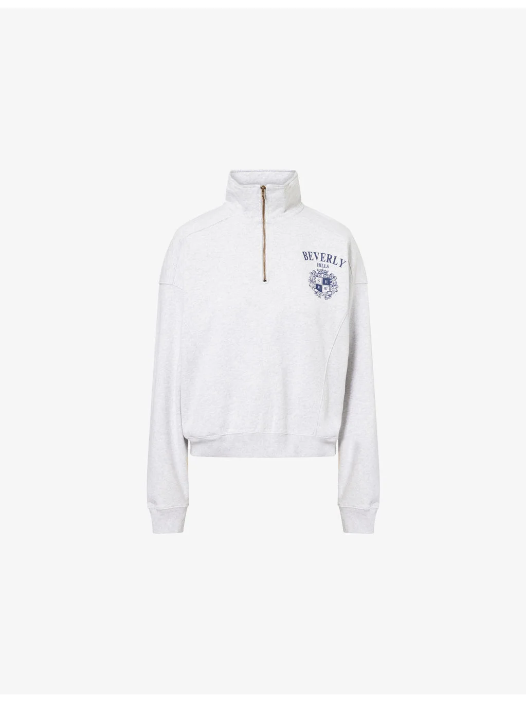 PRODUCT DETAILS - Sporty & Rich cotton-jersey sweatshirt - 100% cotton - Exposed zip fastening at front - Relaxed fit, high-neck, half-zip placket at front, long sleeves, BH crest logo print at chest, ribbed trims, exposed seams, two side slip pockets, jersey texture - Machine wash at 30°C - Made in Portugal - True to size - Model is 5ft 10in/1.78m and wears a size small - Lightweight, non-stretch Ref: R04561355