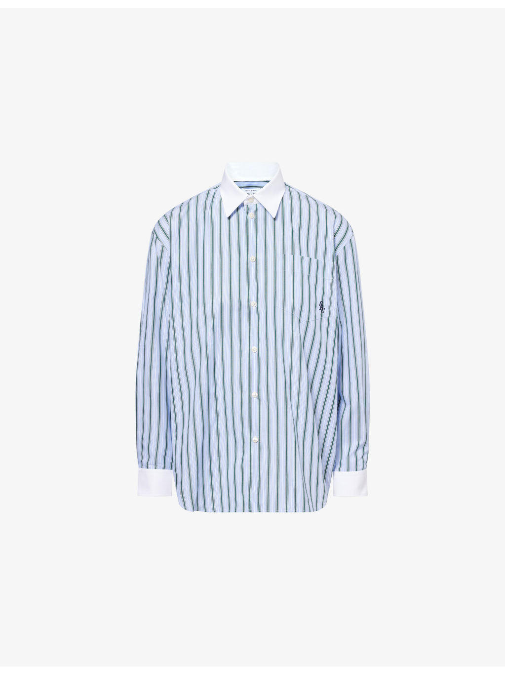 PRODUCT DETAILS - Sporty & Rich cotton-poplin shirt - 100% cotton - Exposed button fastenings at front - Regular fit, pointed collar, long sleeves, contrasting buttoned cuffs, curved hem, all-over stripe print - Machine wash at 30°C - Made in Portugal - True to size - Size small: length 30in / 76cm - Model is 5ft 10in/1.78m and wears a size small - Lightweight, non-stretch Ref: R04520790