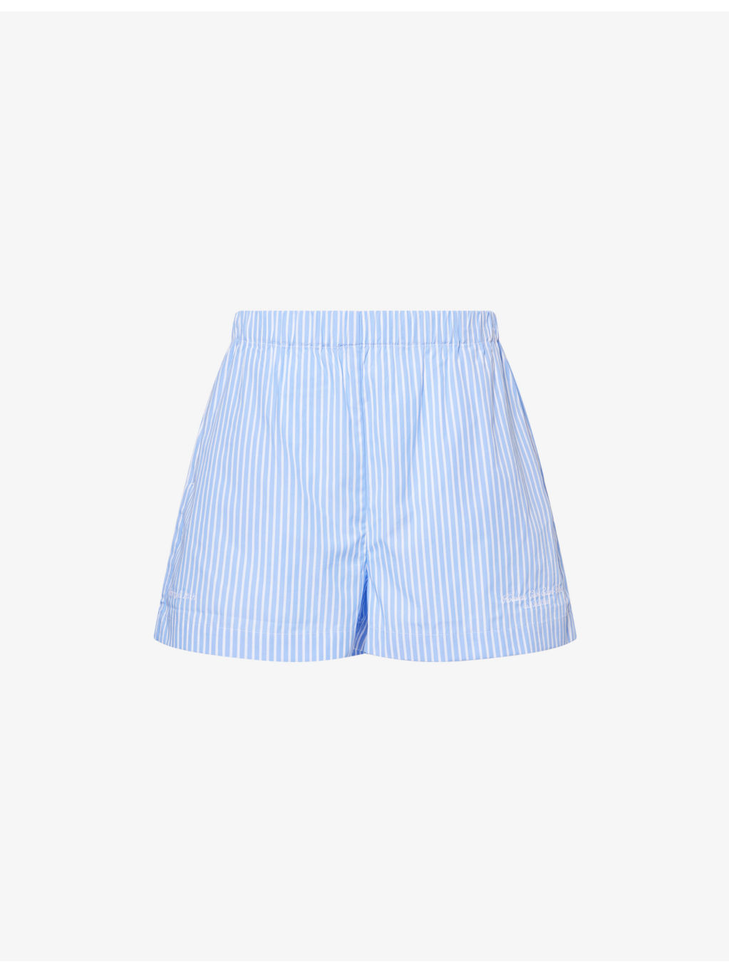 PRODUCT DETAILS - Sporty & Rich cotton shorts - 100% cotton - Pulls on - Relaxed fit, elasticated waist, side pockets, striped, logo at front - Machine wash mild - True to size - Model is 5ft 10in/1.78m and wears a size small - Lightweight, non-stretch Ref: R04520763