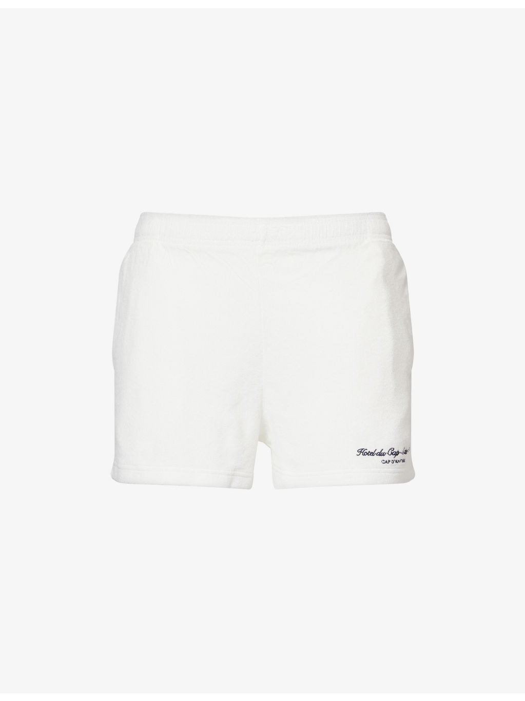 PRODUCT DETAILS - Sporty & Rich terry-cotton shorts - 100% cotton - Pulls on - Relaxed fit, elasticated waist, terry cotton, patch pocket with logo at back, logo at front hem - Machine wash mild - True to size - Model is 5ft 10in/1.78m and wears a size small - Midweight, slight stretch Ref: R04520765