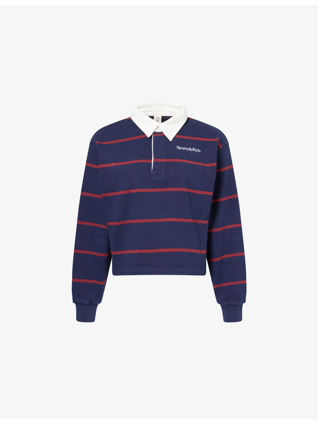 PRODUCT DETAILS - Sporty & Rich cotton polo top - 100% cotton - Concealed button fastenings at front - Regular fit, polo collar, long sleeves, embroidered logo at chest, all-over striped pattern - Machine wash at 30°C - Made in Portugal - True to size - Model is 5ft 10in/1.78m and wears a size small - Midweight, slight stretch Ref: R04579269