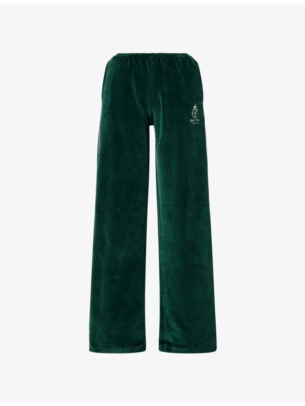 PRODUCT DETAILS - Sporty & Rich cotton-velour jogging bottoms - 100% cotton - Relaxed fit, elasticated waistband, wide leg, embroidered logo at front, side slip pockets, side contrasting stripe - Machine wash at 30°C - Made in Portugal - True to size - Model is 5ft 10in/1.78m and wears a size small - Midweight, slight stretch Ref: R04561373