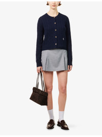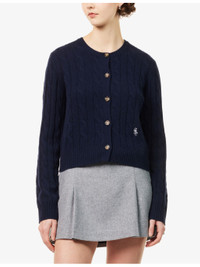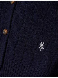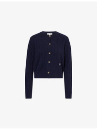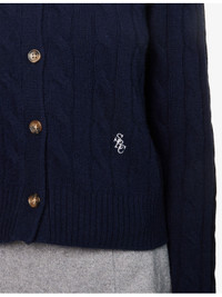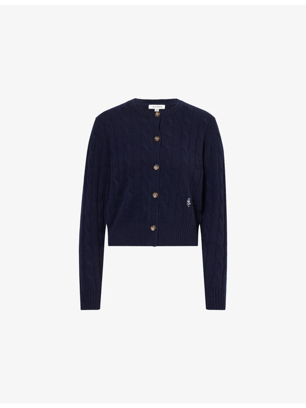 PRODUCT DETAILS - Sporty & Rich cashmere-and-wool cardigan - 70% cashmere, 30% wool - Button fastening at front - Regular fit, round neck, long sleeves, embroidered logo at front, all-over cable knit - Hand wash - True to size - Model is 5ft 10in/1.78m and wears a size small - Lightweight, slight stretch Ref: R04561347