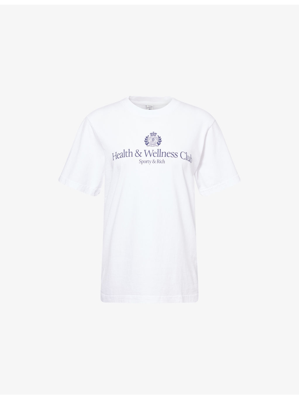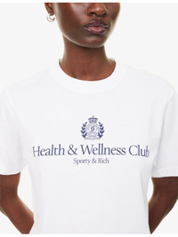 PRODUCT DETAILS - Sporty & Rich cotton-jersey T-shirt - 100% cotton - Relaxed fit, ribbed round-neck, short sleeves, brand and text print at front - Machine wash at 30°C - Made in USA - True to size - Model is 5ft 10in/1.78m and wears a size small - Lightweight, stretchy Ref: R04460592