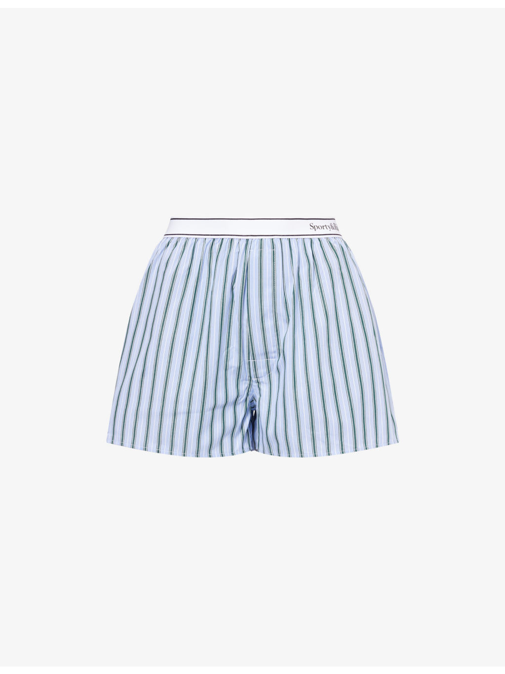 PRODUCT DETAILS - Sporty & Rich cotton-poplin boxer shorts - 100% cotton - Regular fit, mid-rise, branded elasticated waistband, concealed button fastening at front, patch pocket at back, all-over striped print - Machine wash at 30°C - Made in Portugal - True to size - Model is 5ft 10in/1.78m and wears a size small - Lightweight, slight stretch Ref: R04520791