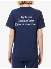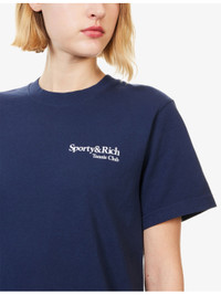 PRODUCT DETAILS - Sporty & Rich cotton T-shirt - 100% cotton - Regular fit, round neck, short sleeves, logo print at chest, slogan at back - Machine wash at 30°C - Made in USA - True to size - Model is 5ft 10in/1.78m and wears a size small - Lightweight, slight stretch Ref: R04520801