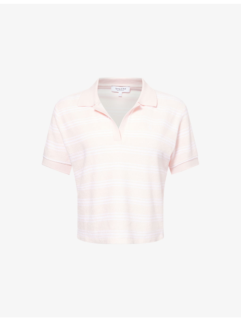 PRODUCT DETAILS - Sporty & Rich cotton polo shirt - 100% cotton - Polo collar - Closed cuffs - Relaxed fit, V-neck, collar, short sleeves, brand embroidery at front, all-over striped print, all-over terry texture, ribbed trims - Machine wash at 30°C - Made in Portugal - True to size - Model is 5ft 10in/1.78m and wears a size small - Midweight, stretchy Ref: R04460589