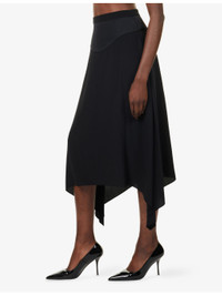 Asymmetric-Hem High-Rise 6Silk Midi Skirt