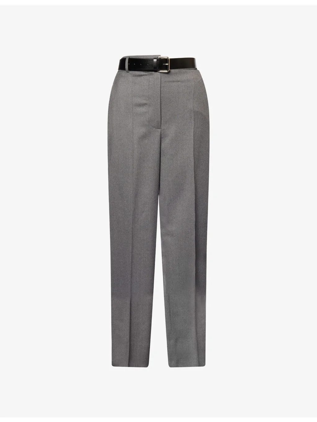 PRODUCT DETAILS - Stella McCartney wool trousers - 100% wool; belt 51% polyester, 49% polyurethane - Concealed button and concealed zip-fly fastening at front - Regular fit, high-rise, asymmetrical rear waist, matching adjustable belt, wide leg, structured waistband with belt loops, two side slip pockets, pressed creases at leg, one rear welt buttoned pocket - Dry clean - Made in Hungary - True to size - Size UK 8: rise 14in / 35cm, inside leg 34in / 86.5cm, leg opening 22in / 56cm - Model is 5ft 10in/1.78m and wears a size UK 8 - Lightweight, non-stretch Ref: R04458111