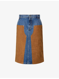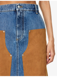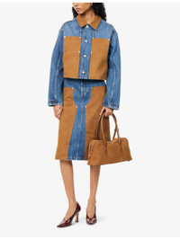 Mixed-Suede High-Waist Denim Skirt