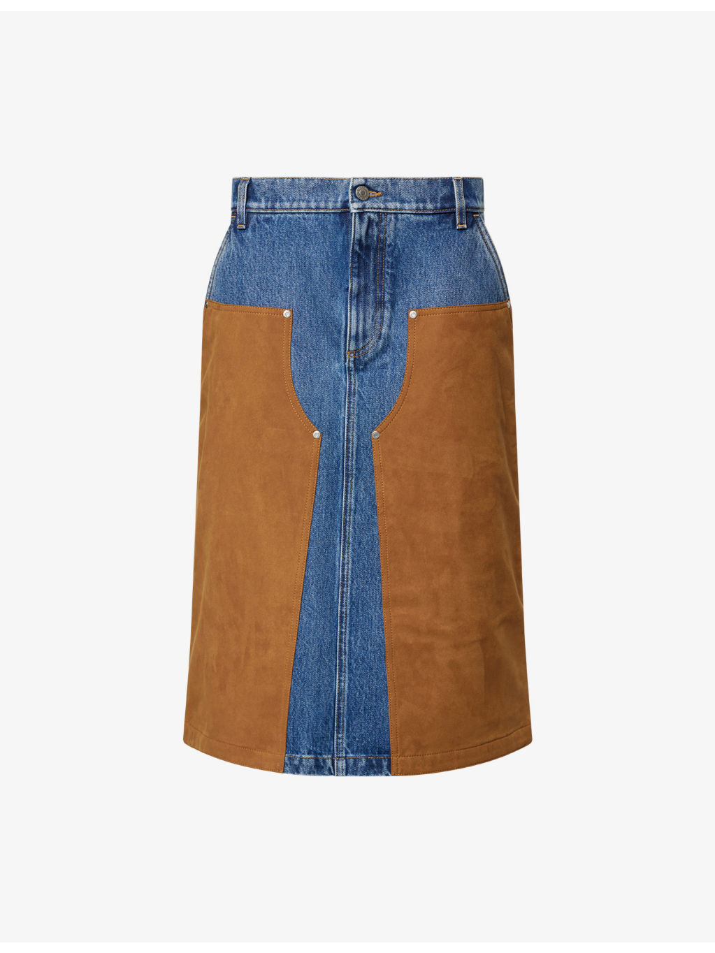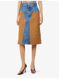 Blue & Tan Mixed Denim & Faux-Suede Midi Skirt