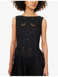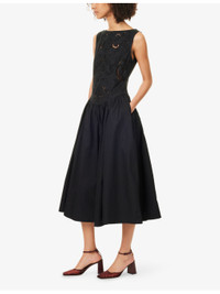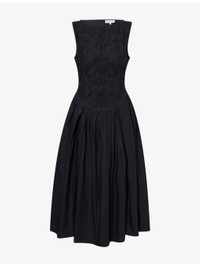 PRODUCT DETAILS - STINE GOYA cotton midi dress - 100% cotton - Concealed zip fastening at back - Regular fit, round neck, sleeveless, broderie embroidered bodice, dropped waist, two side slip pockets, flared skirt, midi length - Machine wash at 30°C - Made in India - True to size - Size small: length 50in / 127cm - Model is 5ft 10in/1.78m and wears a size small - Lightweight, non-stretch Ref: R04602921