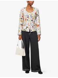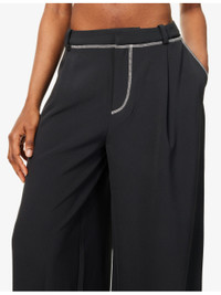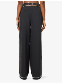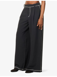 PRODUCT DETAILS - STINE GOYA woven trousers - 95% polyester, 5% elastane - Button, hook-and-eye and zip-fly fastening - Regular fit, mid-rise, wide leg, structured waistband with belt loops, adjustable slider at waist, pleats at front, slip pockets at front, contrast stitching - Dry clean - True to size - Size small: rise 12in / 31cm, inside leg 31in / 79cm, leg opening 26in / 66cm - Model is 5ft 10in/1.78m and wears a size small - Lightweight, slight stretch Ref: R04488149