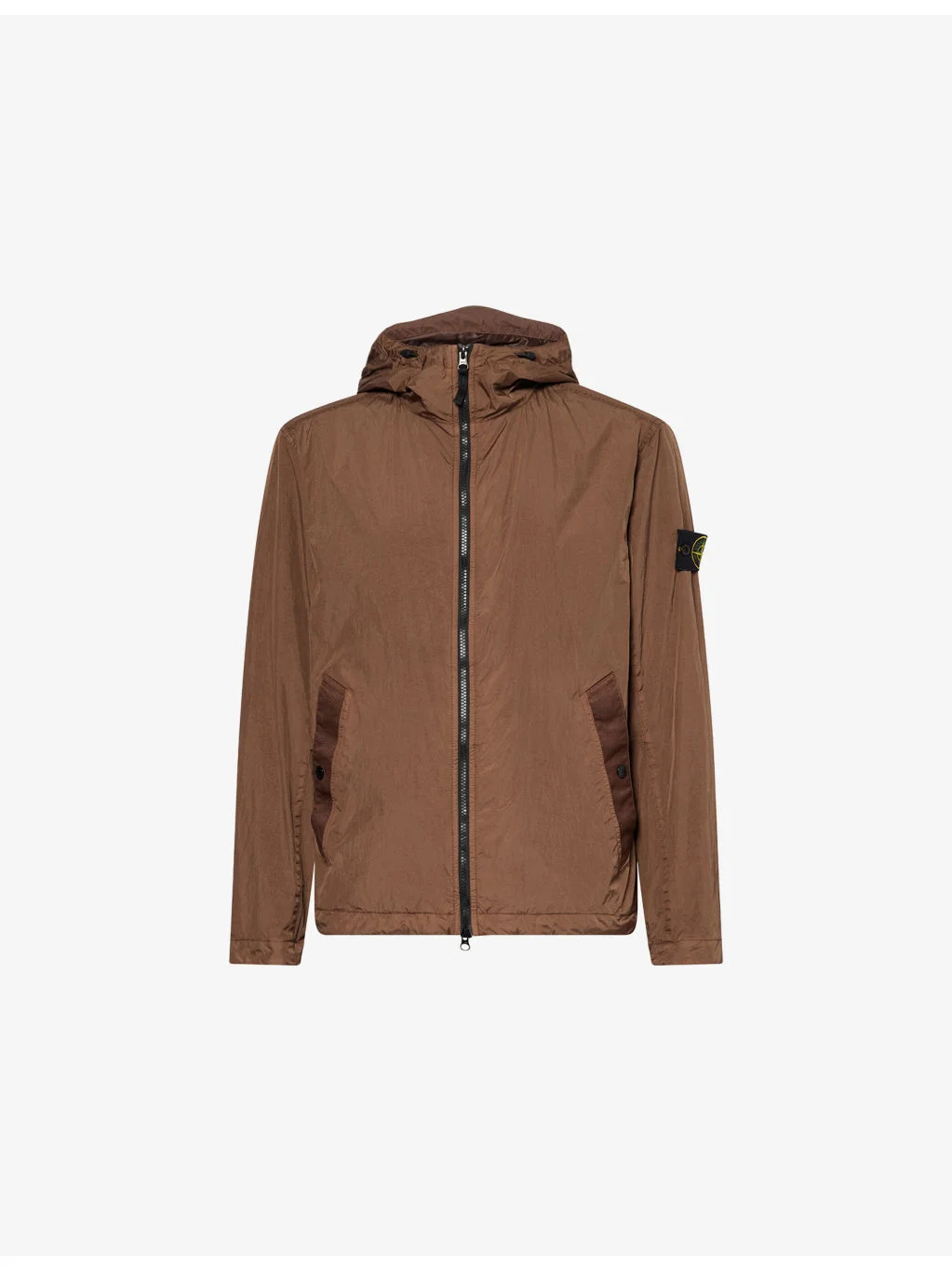 PRODUCT DETAILS - Stone Island woven jacket - 100% polyamide; coating 100% polyurethane resin; lining 100% polyamide - Exposed zip fastening at front - Regular fit, high-neck, drawstring hood, long sleeves, buttoned brand patch at sleeve, buttoned cuffs, two buttoned pockets at front, fully lined, drawstring hem - Hand wash cold - Size medium: length 25in / 64cm, chest 42in / 107cm - Model is 6ft 2in/1.88m and wears a size medium - Lightweight, non-stretch Ref: R04564799