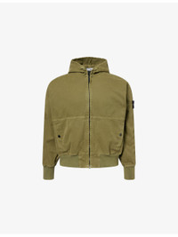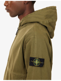 PRODUCT DETAILS - Stone Island cotton jacket - 100% cotton - Exposed zip fastening at front - Relaxed fit, hood, dropped shoulders, long sleeves, brand badge at sleeve, ribbed trims, two side press-stud slip pockets - Machine wash at 40°C - Size medium: length 27in / 69cm, chest 38in / 96cm - Model is 6ft 2in/1.88m and wears a size medium - Midweight, non-stretch Ref: R04564832
