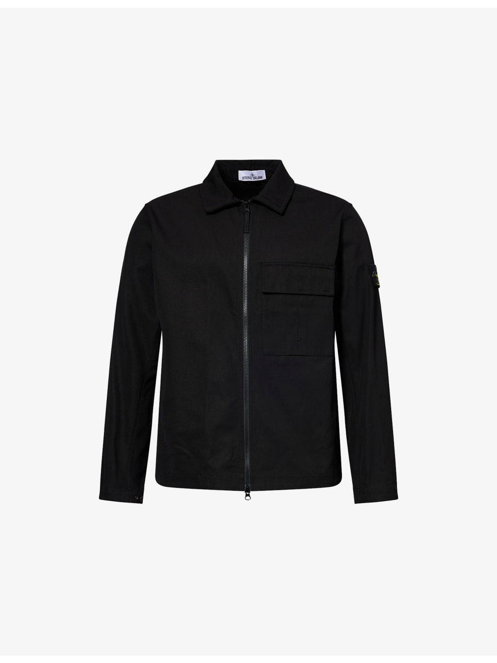 PRODUCT DETAILS - Stone Island cotton jacket - 100% cotton - Exposed zip fastening at front - Boxy fit, classic collar, long sleeves, logo patch at sleeve, flap pocket at chest - Machine wash at 30°C - Made in Indonesia - Size medium: length 27in / 69cm, chest 48in / 122cm - Model is 6ft 2in/1.88m and wears a size medium - Midweight, non-stretch Ref: R04484258