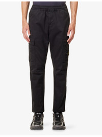 PRODUCT DETAILS - Stone Island Cotton Trousers - 100% cotton - Button and zip-fly fastening - Straight leg, elasticated waist, belt loops, side pockets, patch pockets on leg with brand patch, single welt pocket at back - Machine wash mild - Size UK 30: rise 13in / 33cm, inside leg 31in / 78.7cm, leg opening 18in / 45.7cm - Model is 6ft 2in/1.88m and wears a size UK 30 - Midweight, non-stretch Ref: R04484259