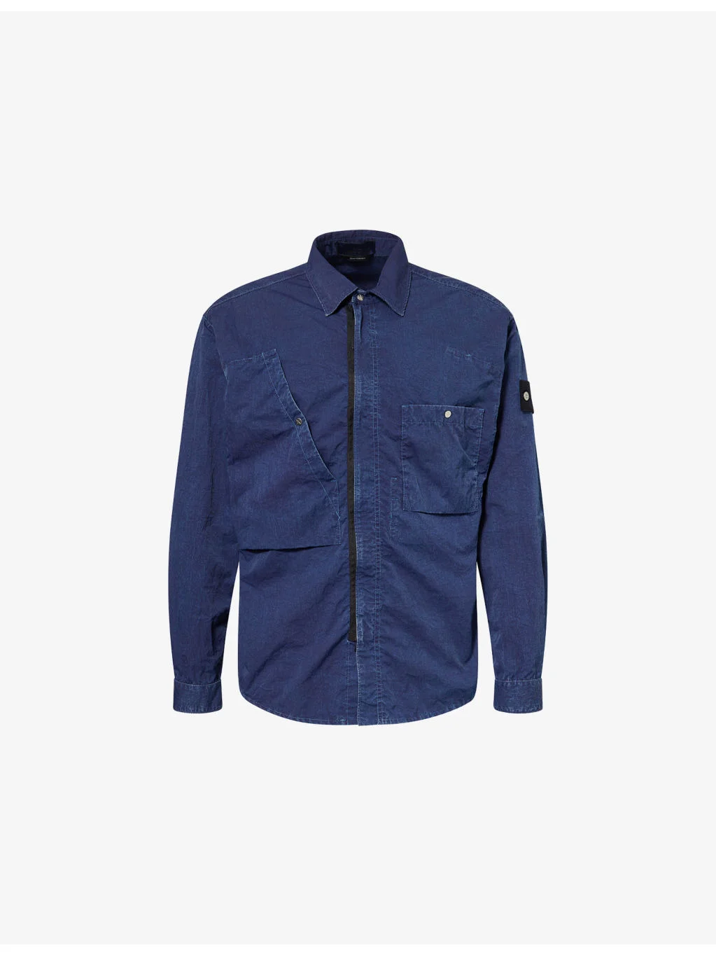 PRODUCT DETAILS - Stone Island woven shirt - 100% polyamide - Concealed zip fastening at front - Spread collar - Buttoned cuffs - Regular fit, collar, long sleeves, buttoned brand patch at sleeve, two buttoned pockets at front, straight yoke at back, all-over wrinkled texture - Machine wash at 30°C - Size medium: length 29in / 74cm, chest 44in / 112cm - Model is 6ft 2in/1.88m and wears a size medium - Lightweight, non-stretch Ref: R04536351