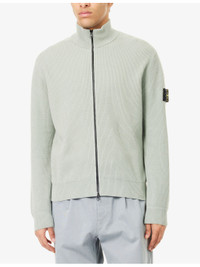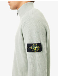 PRODUCT DETAILS - Stone Island cotton-knit jumper - 100% cotton - Regular fit, high-neck, long sleeves, buttoned brand patch at sleeve, all-over knitted and ribbed - Hand wash cold - Model is 6ft 2in/1.88m and wears a size medium - Midweight, stretchy Ref: R04564863