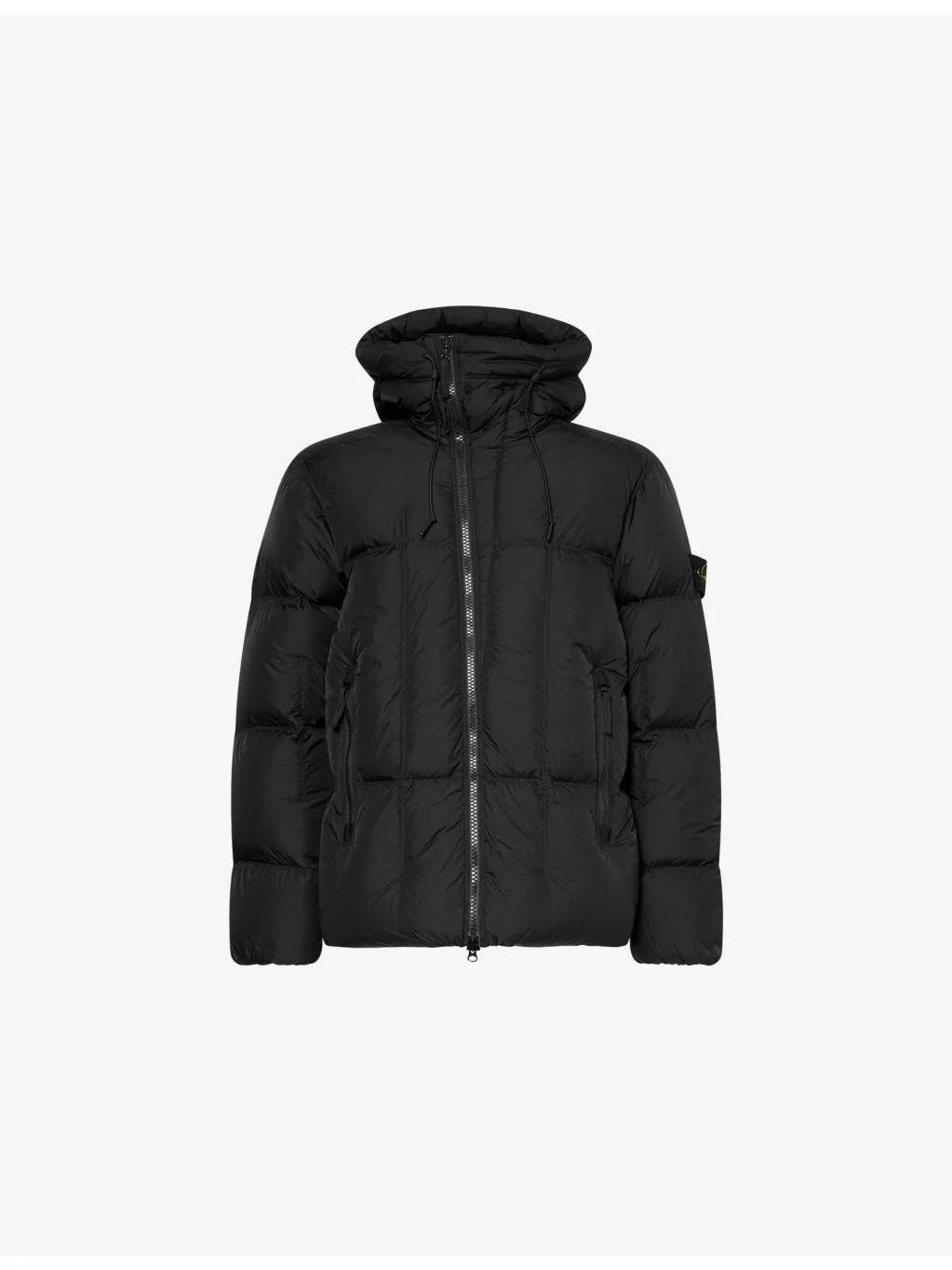 PRODUCT DETAILS - Stone Island shell-down jacket - 100% polyamide; filling 90% duck down, 10% duck feather; lining 100% polyamide - Exposed zip fastening at front - Regular fit, high-neck, drawstring hood, long sleeves, buttoned brand patch at sleeve, elasticated cuffs, two zip pockets at front, all-over quilted and padded, fully lined, drawstring hem - Machine wash at 30°C - Size medium: length 27in / 69cm, chest 42in / 107cm - Model is 6ft 2in/1.88m and wears a size medium - Lightweight, slight stretch Ref: R04564804