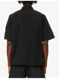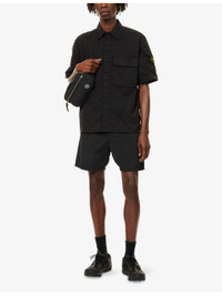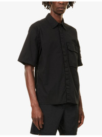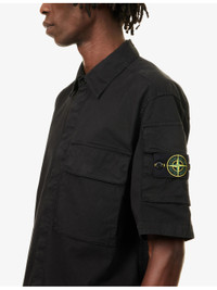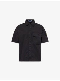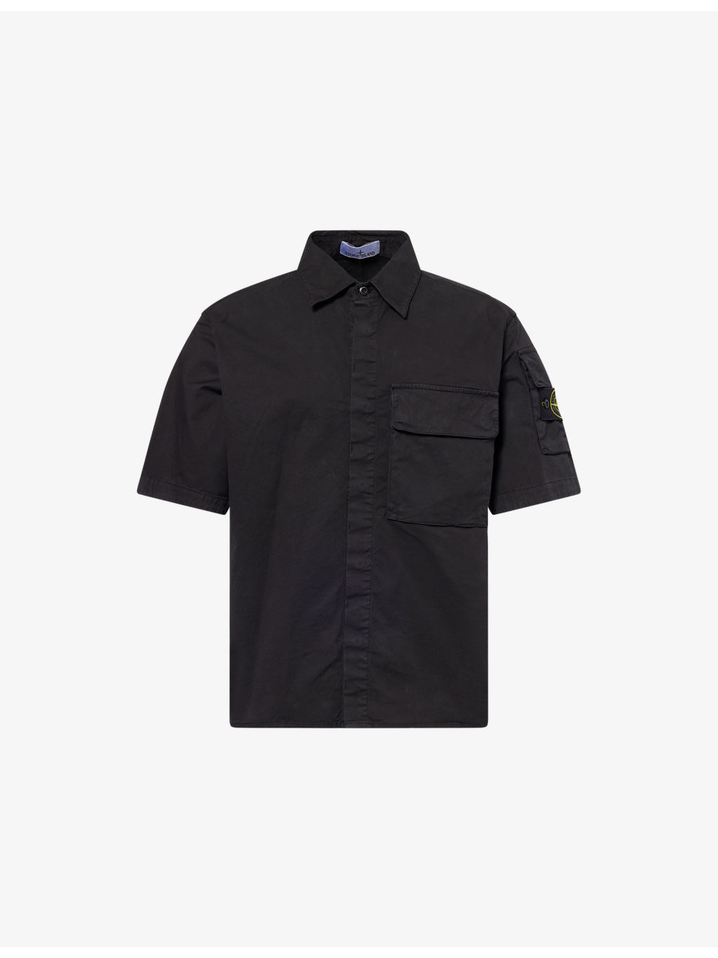 PRODUCT DETAILS - Stone Island cotton-blend shirt - 97% cotton, 3% elastane - Concealed button fastenings at front - Pointed classic collar, short sleeves, one patch flap pockets at chest, embroidered compass logo patch at sleeve - Machine wash at 30°C - Made in Tunisia - Size medium: length 29in / 74cm, chest 44.2in / 112.5m - Model is 6ft 2in/1.88m and wears a size medium - Lightweight, non-stretch Ref: R04484252