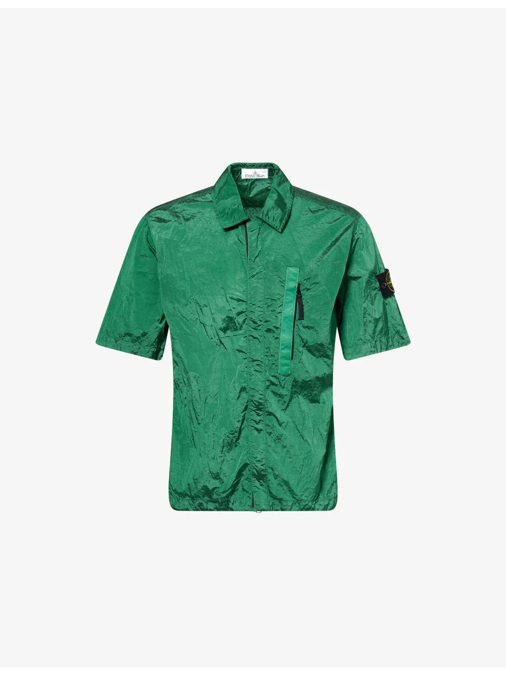 PRODUCT DETAILS - Stone Island nylon shirt - 100% polyamide - Zip fastening - Regular fit, classic collar, short sleeves, zip pocket at chest, brand badge at sleeve, covered placket - Machine wash at 30°C - Size medium: length 28in / 71cm, chest 44in / 112cm - Model is 6ft 2in/1.88m and wears a size medium - Lightweight, non-stretch Ref: R04564869