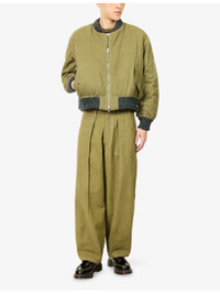 PRODUCT DETAILS - Story mfg. cotton bomber jacket - 100% cotton - Exposed zip fastening at front - Reversible, flat collar, long sleeves, two slanted flap pockets at front, one zipped pocket at sleeve, knitted trims, pattern on reverse - Hand wash - Made in India - Size medium: length 25.5in / 65cm, chest 53.9in / 137cm - Model is 6ft 2in/1.88m and wears a size medium - Midweight, non-stretch Ref: R04504767