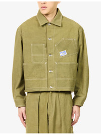 PRODUCT DETAILS - Story mfg. cotton jacket - 100% cotton - Button fastening - Boxy fit, classic collar, long sleeves, four patch pockets at front, embroidered brand patch at front, contrast topstitch detailing, silver-toned hardware, cropped length - Hand wash - Made in India - Size medium: length 26.3in / 67cm, chest 47.2in / 120cm - Model is 6ft 2in/1.88m and wears a size medium - Lightweight, non-stretch Ref: R04504768
