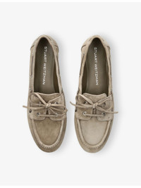 PRODUCT DETAILS - Stuart Weitzman suede moccasins - 100% suede - Closed almond toe, silver-toned eyelets, laced trim at top, branded footbed, flat sole - Specialist leather clean - Upper: 100% suede - Lining: 100% leather - Sole: 100% synthetic Ref: R04473040