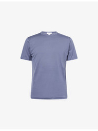 PRODUCT DETAILS - Sunspel cotton t-shirt - 100% cotton - Regular fit, crewneck, short sleeves, topstitch detailing, straight hem - Machine wash at 30°C - Made in UK - Model is 6ft 2in/1.88m and wears a size medium - Lightweight, slight stretch Ref: R04497762