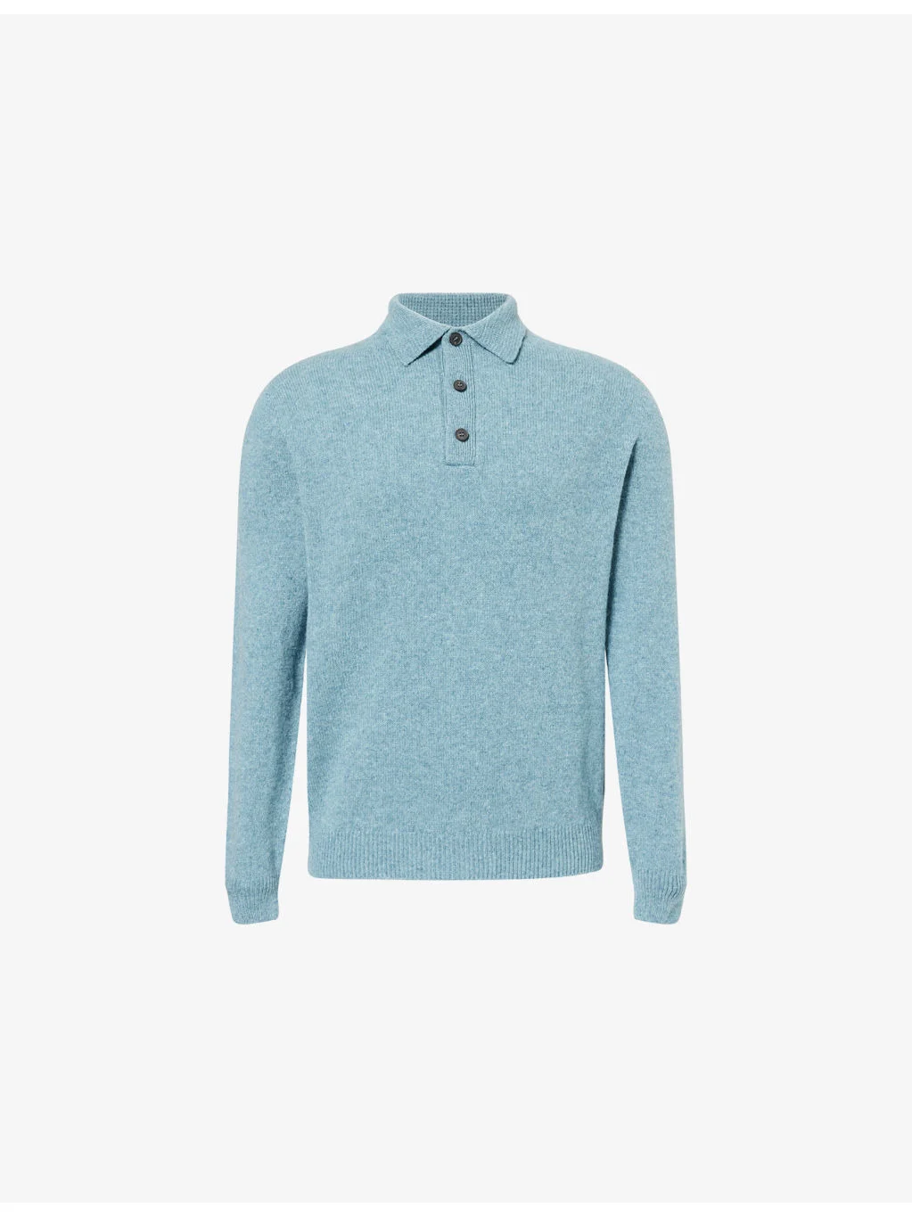 PRODUCT DETAILS - Sunspel wool polo shirt - 100% lambs wool - Button fastening - Regular fit, polo collar, long sleeves, ribbed trims, knitted - Hand wash - True to size - Midweight, slight stretch Ref: R04551879