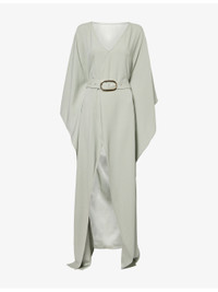 PRODUCT DETAILS - Taller Marmo woven maxi dress - 78% acetate, 22% viscose - Relaxed fit, V-neck, flare sleeves, detachable belt, split at front, panel at sides, all-over crepe texture - Dry clean - Made in Italy - True to size - One size: length 64in / 162cm - Model is 5ft 10in / 1.78m and wears one size - Lightweight, slight stretch Ref: R04547860