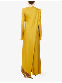 PRODUCT DETAILS - Taller Marmo stretch-woven maxi dress - 74% acetate, 22% viscose, 4% elastane; contrast 78% acetate, 22% viscose; embellishments 100% acetate - Concealed zip fastening at back - Regular fit, round-neck, long sleeves, split cuffs, panel around body, all-over satin and crepe texture, split at back, fringed at back - Specialist dry clean only - Made in Italy - True to size - Size UK 10: length 59in / 150cm - Model is 5ft 10in / 1.78m and wears a size UK 10 - Lightweight, slight stretch Ref: R04547857