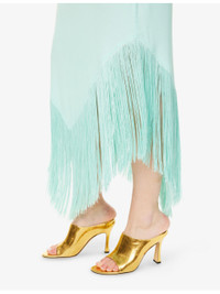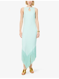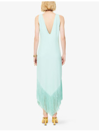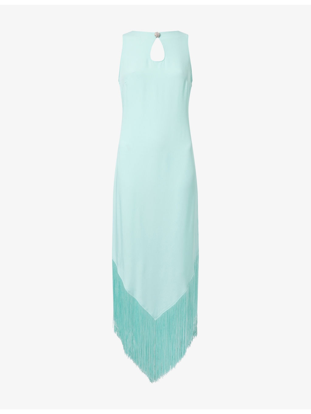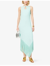 PRODUCT DETAILS - Taller Marmo woven midi dress - 78% acetate, 22% viscose; embellishments 100% acetate - Concealed zip fastening at side - Regular fit, round-neck, sleeveless, V-neckline at back, rhinestone plaque embellishment at front, all-over crepe texture, fringed hem - Hand wash cold - Made in Italy - True to size - Size UK 8: length 57in / 142cm - Model is 5ft 10in/1.78m and wears a size UK 8 - Lightweight, slight stretch Ref: R04487000