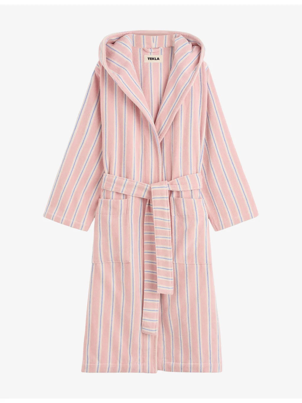 PRODUCT DETAILS - Tekla cotton robe - 100% cotton - Self-tie fastening - Oversized fit, shawl collar with hood, long sleeves, belt loops, removable belt, two patch pockets at front, logo patch at front, striped pattern, terry towel texture - Machine wash cold - Made in Portugal - True to size - Midweight, non stretch Ref: R04453126