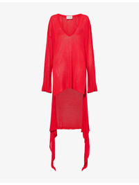 PRODUCT DETAILS - The Attico knitted mini dress - 100% viscose - Relaxed fit, V-neck, dropped shoulders, long sleeves, all-over cut-out pattern, all-over knitted, asymmetric hem - Hand wash cold - Made in Croatia - True to size - Size UK 8: length 42in / 107cm - Model is 5ft 10in/1.78m and wears a size UK 8 - Midweight, stretchy Ref: R04472602