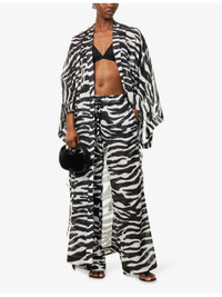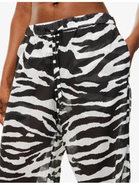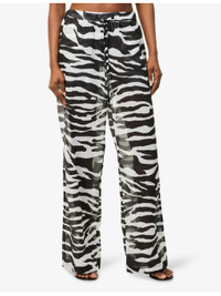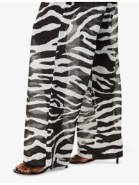 PRODUCT DETAILS - The Attico cotton-poplin trousers - 100% cotton - Relaxed fit, high-rise, wide leg, drawstring elasticated waistband, two slip pockets at front, patch pocket at back, all-over zebra print, semi-sheer - Machine wash at 40°C - Made in Italy - True to size - Size UK 8: rise 12in / 32cm, inside leg 31in / 80cm, leg opening 22in / 56cm - Model is 5ft 10in/1.78m and wears a size UK 8 - Lightweight, stretchy Ref: R04472603