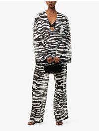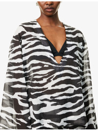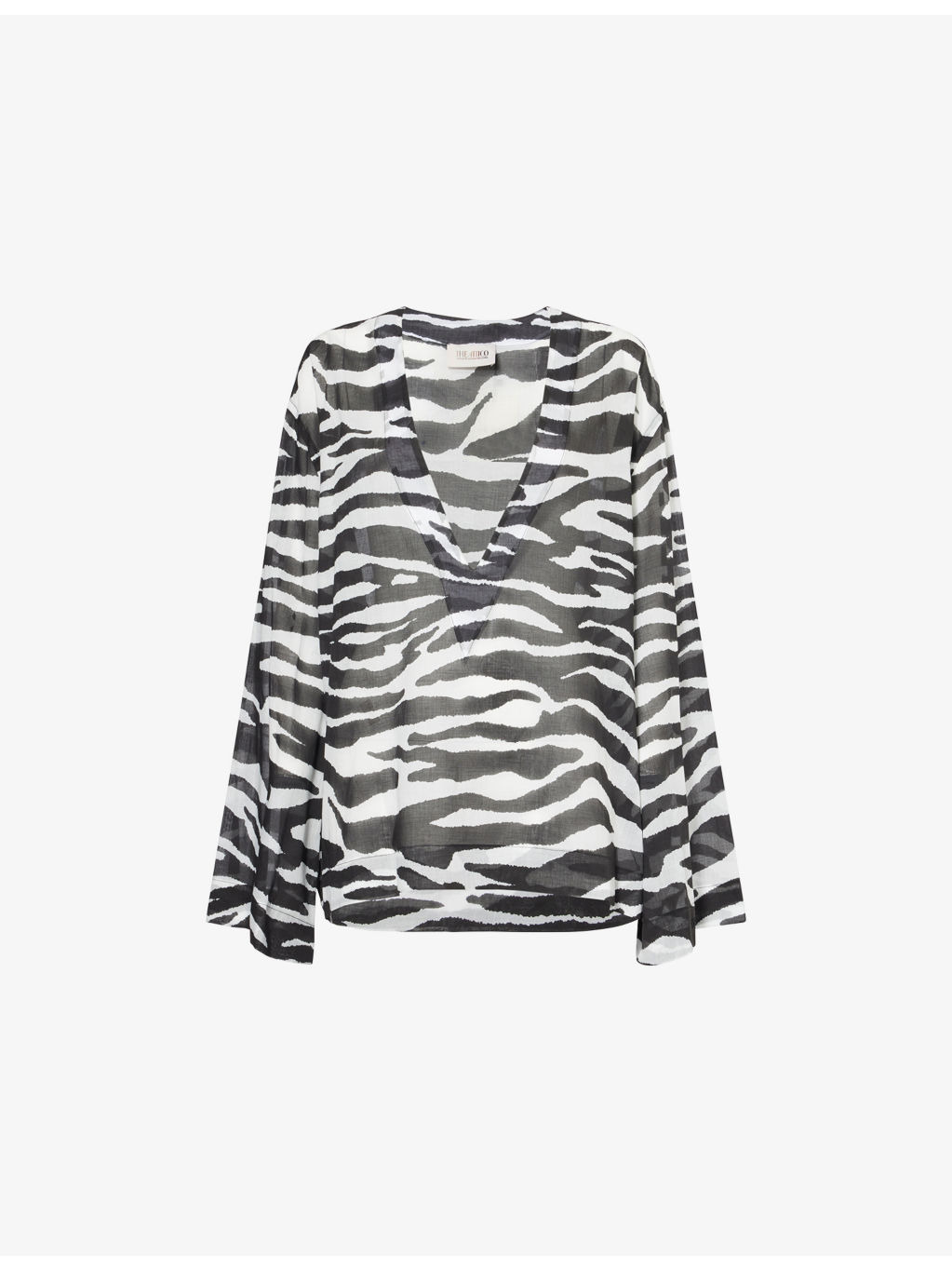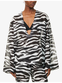 PRODUCT DETAILS - The Attico cotton-poplin blouse - 100% cotton - Relaxed fit, plunge V-neck, long sleeves, flared cuffs, brand embroidery at cuff, all-over zebra print - Machine wash at 40°C - Made in Italy - True to size - Model is 5ft 10in/1.78m and wears a size UK 8 - Lightweight, stretchy Ref: R04472604