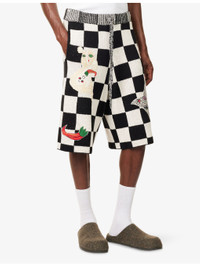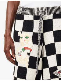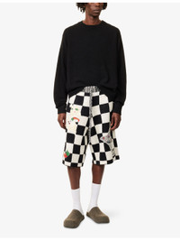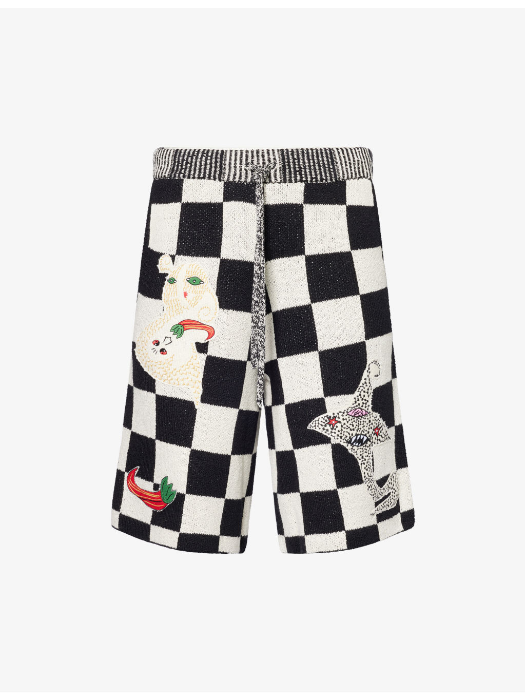 PRODUCT DETAILS - The Elder Statesman knitted shorts - 100% cotton - Elasticated drawstring waist, two slip pockets at front, embroidered designs at front, all-over check pattern - Dry clean only - Made in USA - Model is 6ft 2in/1.88m and wears a size medium - Midweight, slight stretch Ref: R04501108