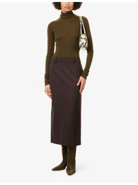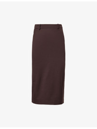 PRODUCT DETAILS - The Frankie Shop woven midi skirt - 54% polyester, 44% wool, 2% elastane - Concealed zip fastening at back - Regular fit, high-rise, belt loops, slit at back - Dry clean - True to size - Size small: length 34in / 86.5cm - Model is 5ft 10in/1.78m and wears a size small - Midweight, non-stretch Ref: R04547001