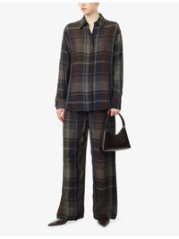 PRODUCT DETAILS - The Frankie Shop woven trousers - 100% viscose - Relaxed fit, high-rise, wide leg, elasticated waistband, two slip pockets at front, all-over check print, all-over satin texture, sheer - Hand wash cold - Made in Morocco - True to size - Size small: rise 16in / 41cm, inside leg 30in / 76cm, leg opening 22in / 56cm - Model is 5ft 10in/1.78m and wears a size small - Lightweight, slight stretch Ref: R04587180