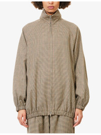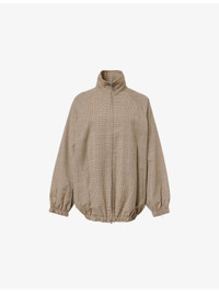 PRODUCT DETAILS - The Frankie Shop woven jacket - 52% polyester, 26% cotton, 22% wool - Concealed zip fastening at front - Oversized fit, high-neck, long sleeves, welt pockets at front, all-over houndstooth pattern, elasticated trims, fully lined - Dry clean - Size small: length 29.5in / 75cm, chest 29in / 74cm - Model is 5ft 10in/1.78m and wears a size small - Midweight, non-stretch Ref: R04546952