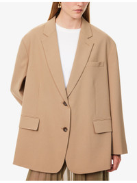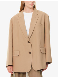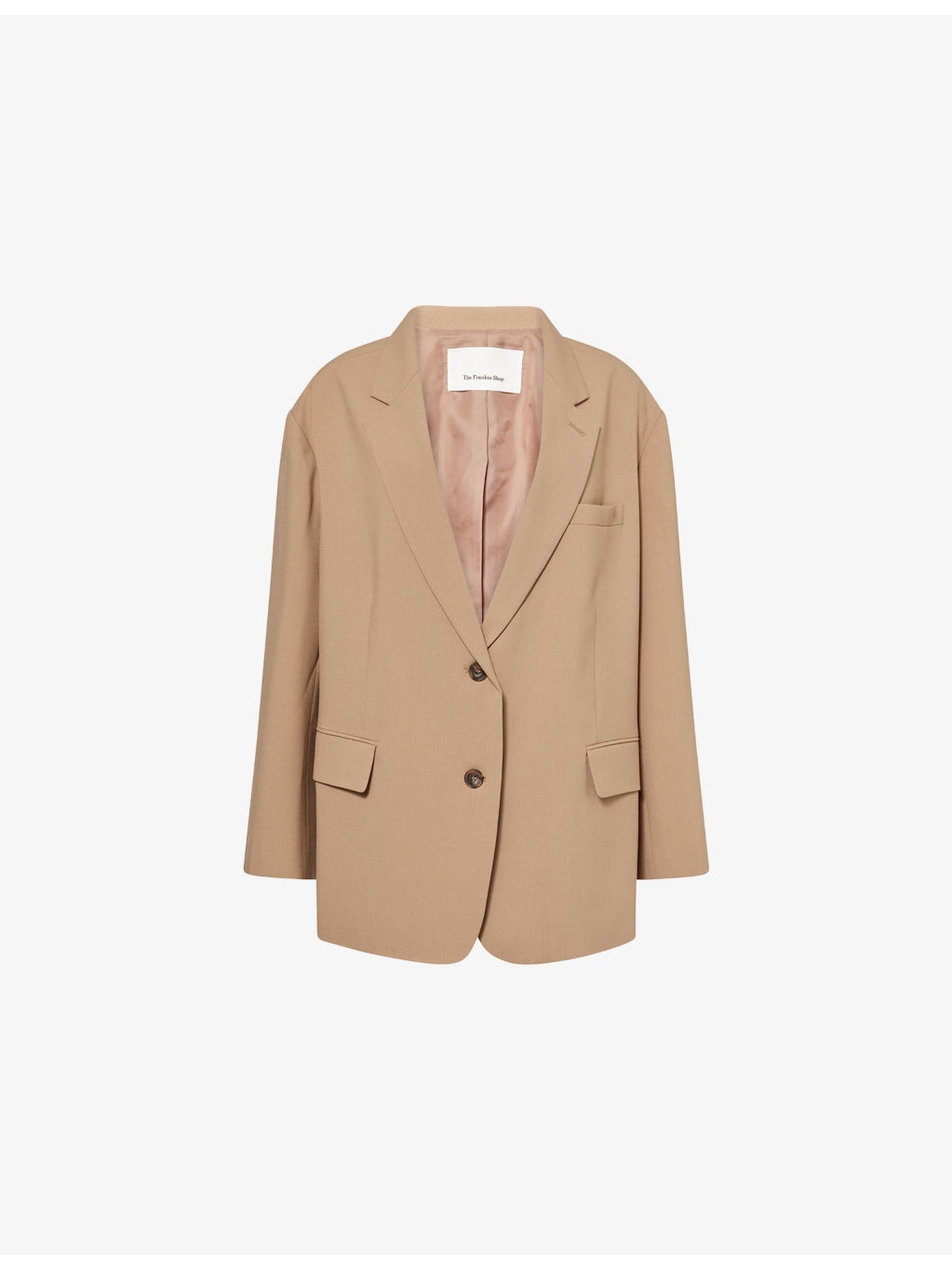 PRODUCT DETAILS - The Frankie Shop stretch-woven blazer - 96% polyester, 4% elastane; lining 100% polyester - Exposed button fastenings at front - Relaxed fit, single-breasted, notch lapels, long sleeves, buttoned cuffs, one chest welt pocket, two side flap pockets, two rear vents fully lined - Dry clean - True to size - Size small: length 30in / 76.5cm - Model is 5ft 10in/1.78m and wears a size small - Midweight, non-stretch - Made in South Korea Ref: R04500025