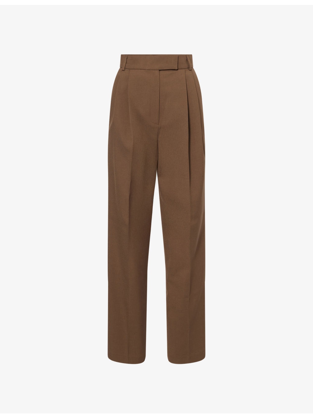 PRODUCT DETAILS - The Frankie Shop stretch-woven trousers - 96% polyester, 4% elastane - Concealed button, hook-and-eye and zip-fly fastening at front - Relaxed fit, high-rise, straight leg, structured waistband with belt loops, pressed creased at leg, front pleats, two side slip pockets, two rear welt buttoned pockets - Dry clean - True to size - Size small: rise 14in / 36cm, inside leg 31in / 79cm, leg opening 16in / 41cm - Model is 5ft 10in/1.78m and wears a size UK 8 - Lightweight, non-stretch Ref: R04500030