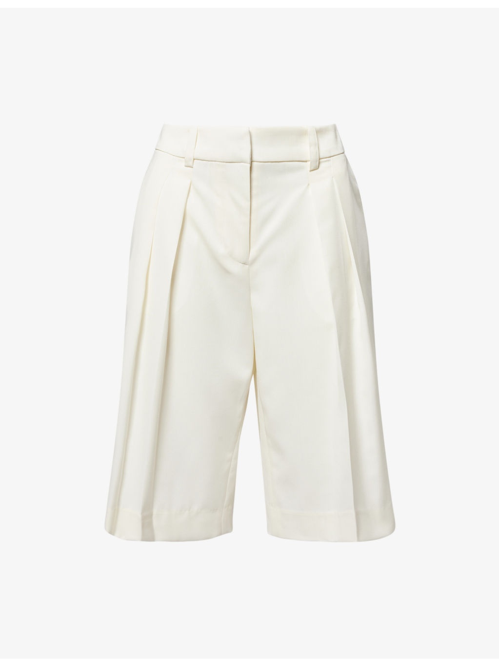 PRODUCT DETAILS - The Frankie Shop wool-blend shorts - 55% polyester, 45% virgin wool - Button, hook-and-eye and zip-fly fastening - Regular fit, mid-rise, structured waistband with belt loops, slip pockets at front, pleated design, pocket at back, twill woven texture - Dry clean - True to size - Size small: rise 11in / 28cm, inside leg 14in / 36cm, leg opening 25in / 64cm - Model is 5ft 10in/1.78m and wears a size small - Lightweight, non-stretch Ref: R04499788
