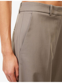 PRODUCT DETAILS - The Frankie Shop woven trousers - 53% polyester, 43% wool, 4% elastane - Concealed button, hook-and-eye and zip-fly fastenings at front - Regular fit, high-rise, wide-leg, belt loops, pressed crease at front and back, side slip pockets, welt pocket at back - Dry clean - True to size - Size small: rise 14in / 36cm, inside leg 31.5in / 80cm, leg opening 25in / 63.5cm - Model is 5ft 10in/1.78m and wears a size small - Midweight, non-stretch Ref: R04546941