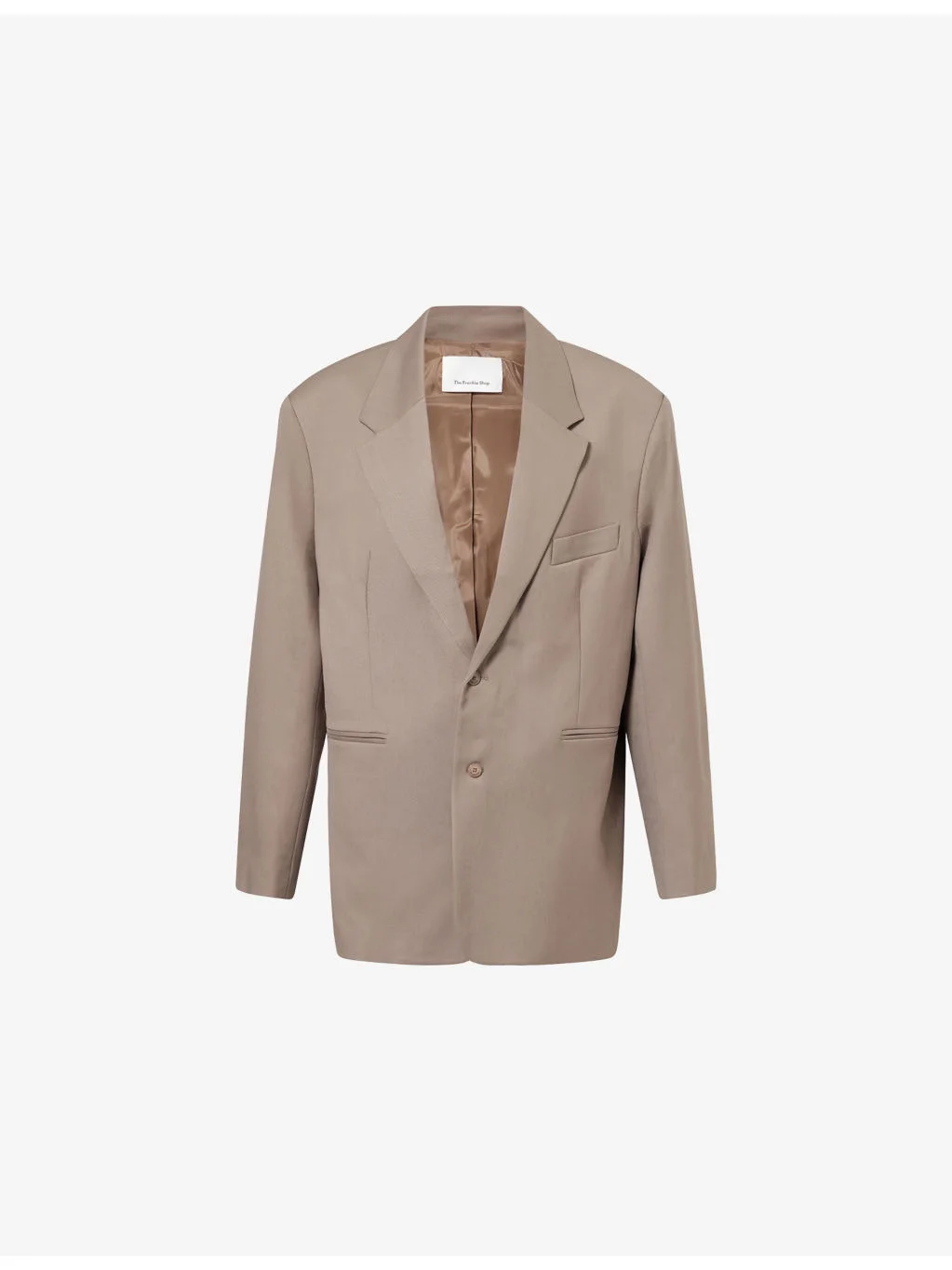 PRODUCT DETAILS - The Frankie Shop woven blazer - 54% polyester, 44% wool, 2% elastane - Button fastening at front - Regular fit, notch lapels, padded shoulders, long sleeves, buttoned cuffs, welt pockets at chest and front, fully lined - Dry clean - Made in France - True to size - Size small: length 30.5in / 77cm - Model is 5ft 10in/1.78m and wears a size small - Midweight, non-stretch Ref: R04546968