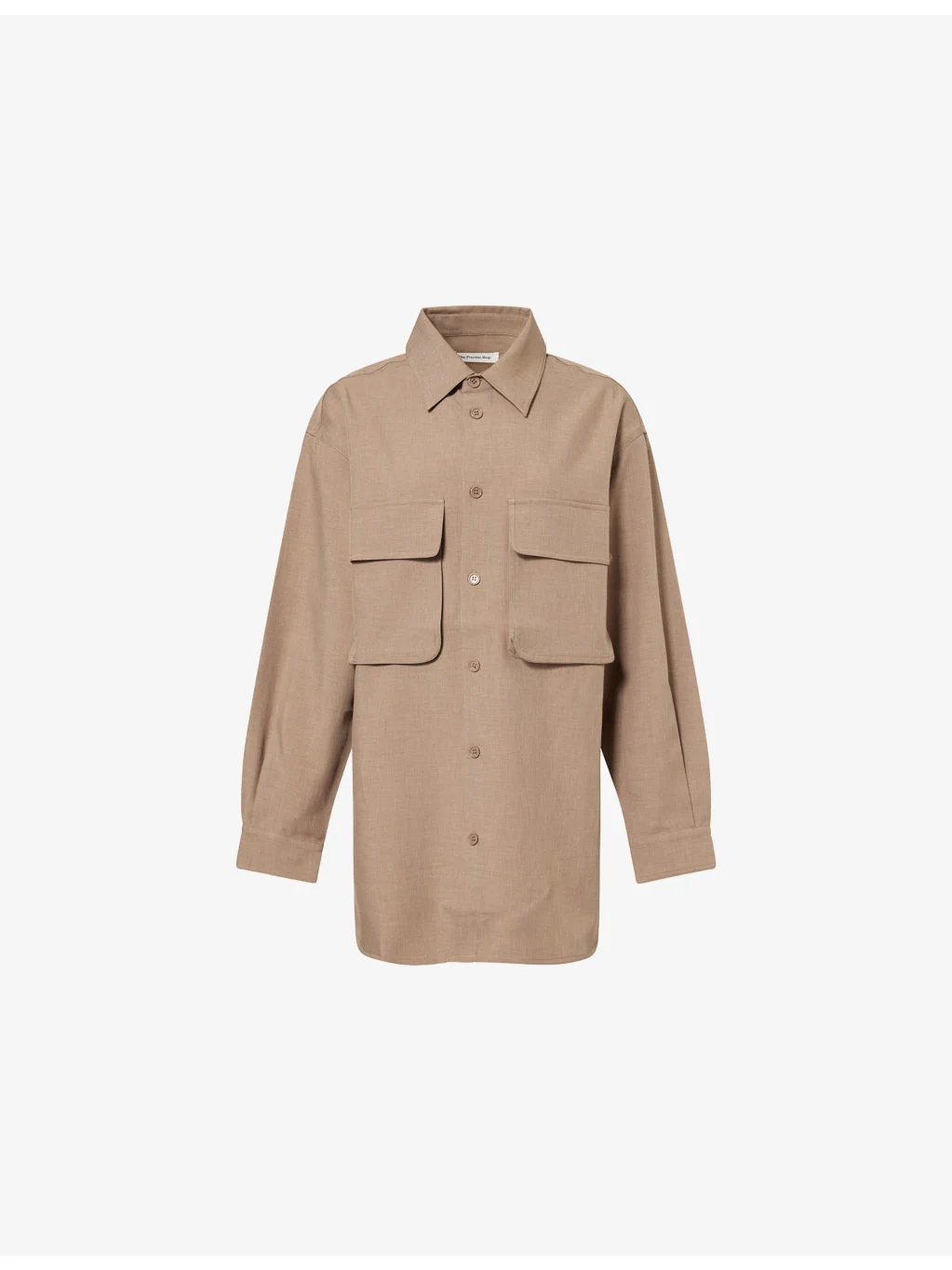 PRODUCT DETAILS - The Frankie Shop woven shirt - 100% polyester - Exposed button fastening at front - Relaxed fit, pointed collar, long sleeves, buttoned cuffs, flap pockets at chest - Dry clean - True to size - Size small: length 31.5in / 80cm, chest 45in / 114.5cm - Model is 5ft 10in/1.78m and wears a size small - Midweight, non-stretch Ref: R04546981